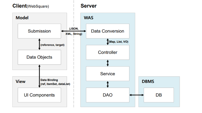 웹스퀘어 Web Square 란? 웹 표준을 준수한 UI프레임워크로 UI컴포넌트와 Util API, 통합 개발 도구 제공하는 솔루션이라고 한다. 쉽게 말해 프론트 화면 개발 툴이다. 프론트개발을 그켬하는 백엔드