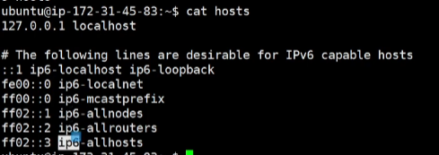cat 명령어를 통해서 host 파일을 살펴보면 총 9줄로 되어 있는 것을 확인할 수 있다.
