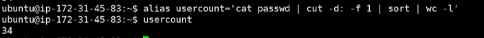 우리는 전에 학습한 alias를 통해서 하나의 커맨드를 생성할 수 있다. 즉 usercount 유저의 인원 수를 출력하는 것을 이렇게 간단한 Rule을 통해서 완성시킨 것이다.