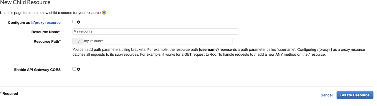 - Create Resource : 해당 API 리소스 기준으로 관리가 가능(Tree 구조로 서비스 관리 가능)