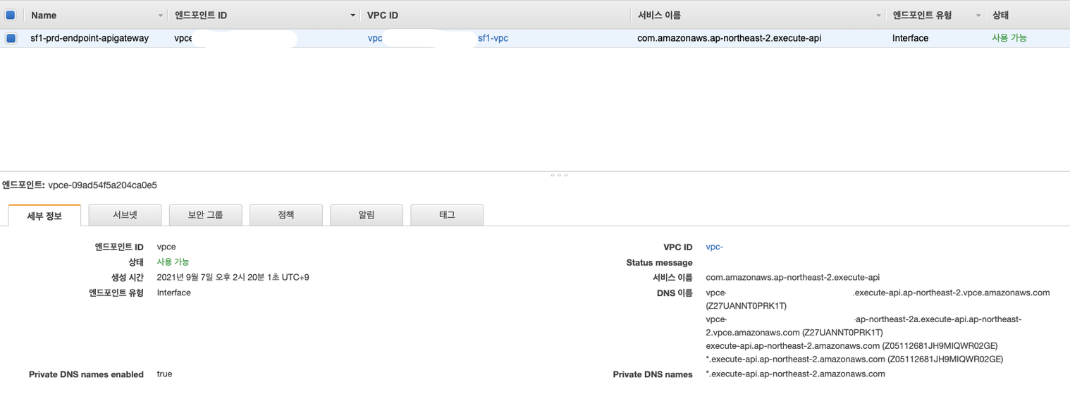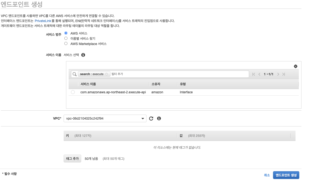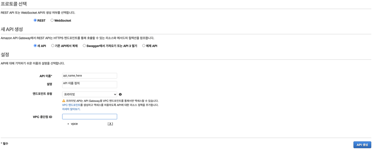 - API Gateway 용 VPC 엔드포인드 생성이 필요