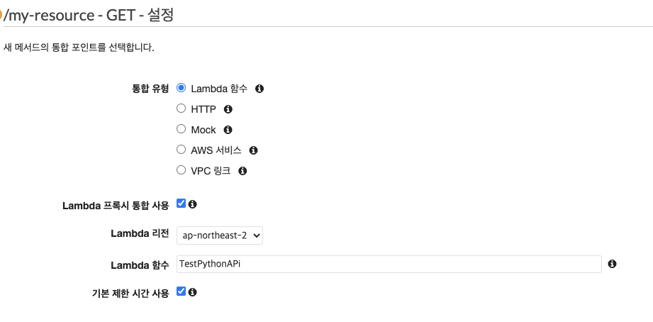 - Lambda 함수 : 연결 하고자하는 Lambda 선택