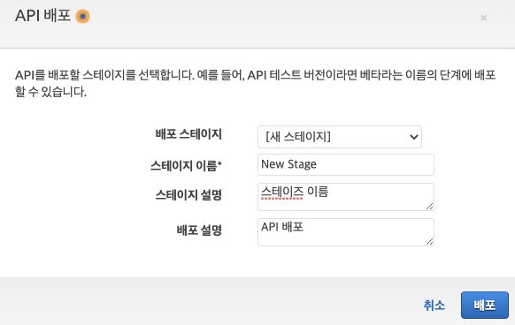 - 배포 스테이지 : 없으면 신규 생성 , 있으면 배포 스테이지 선택