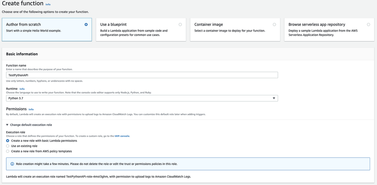 - AWS Console에서 Lambda 검색후 생성하기 클릭