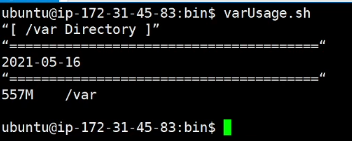 셸 스크립트를 실행시켜보면 /var 디렉토리의 사용량을 볼 수 있다. 이렇듯 특정 디렉토리의 사용량이 얼마나 증가되고 있는지에 대해 반복적으로 살펴 볼 수 있다.