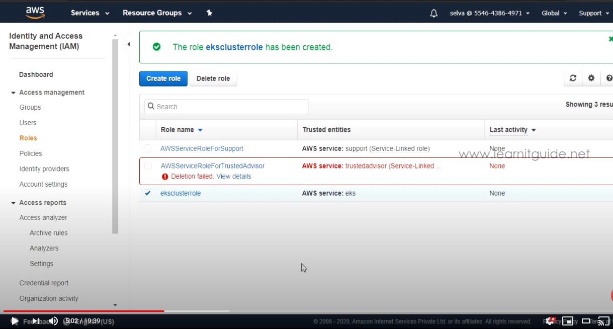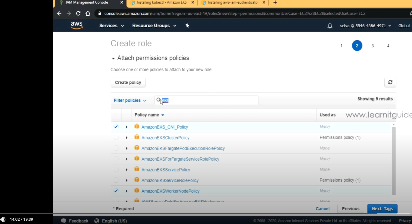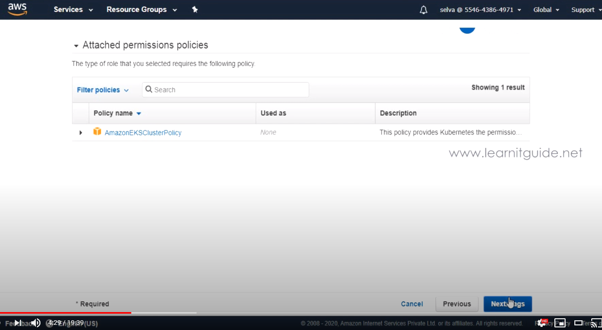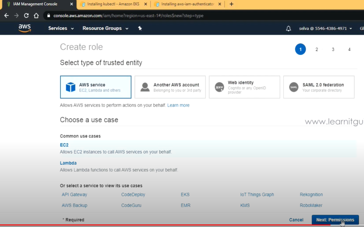 1. Create IAM role for EKS Cluster