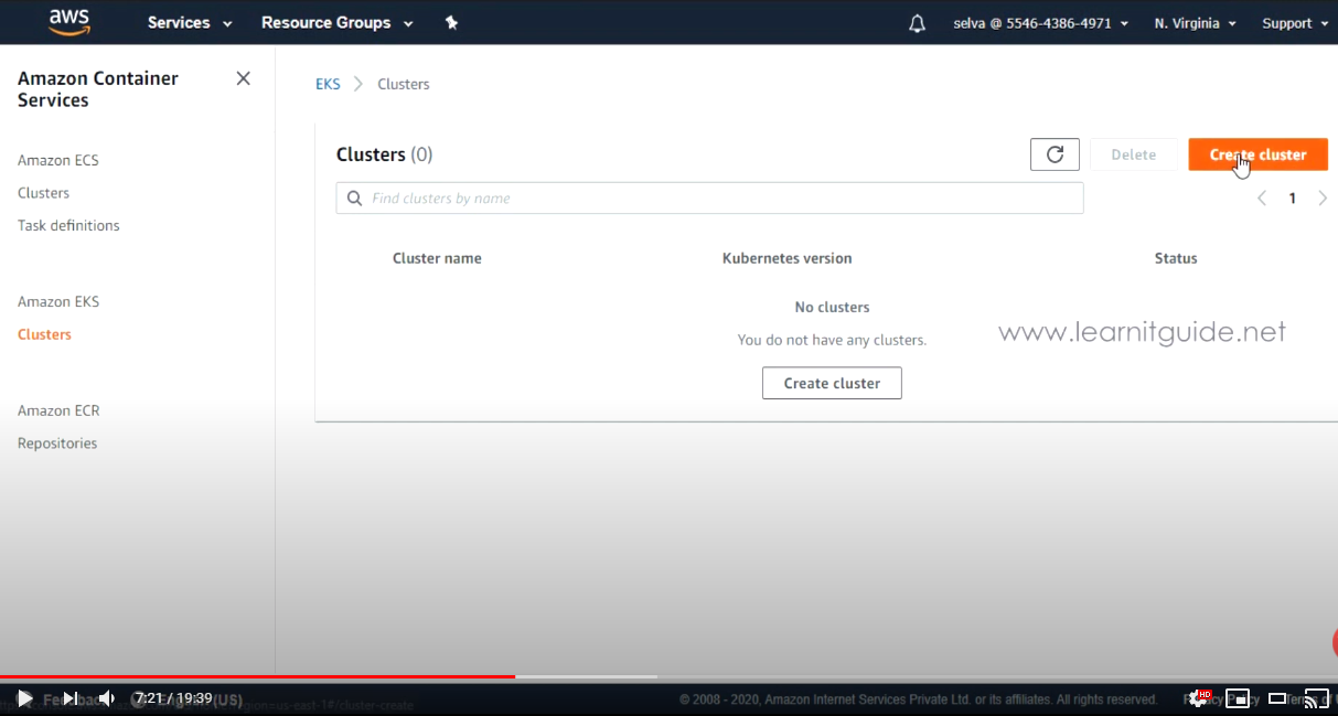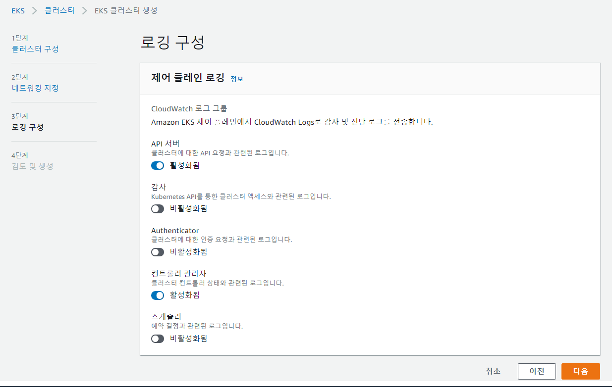 - EKS -> Cluster 생성