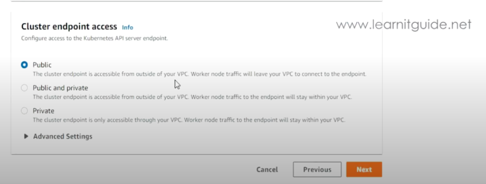 - Cluster endpoint access 확인