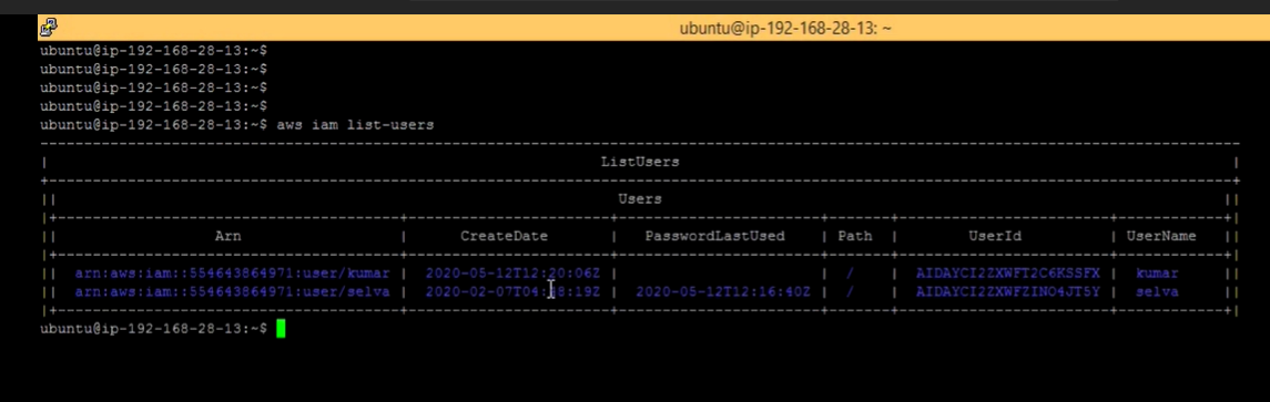 - aws iam list-users