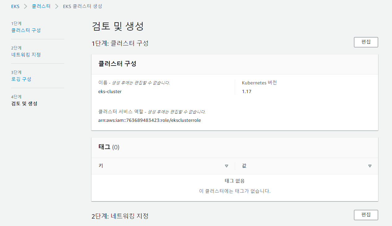 - EKS 클러스터 검토 및 생성