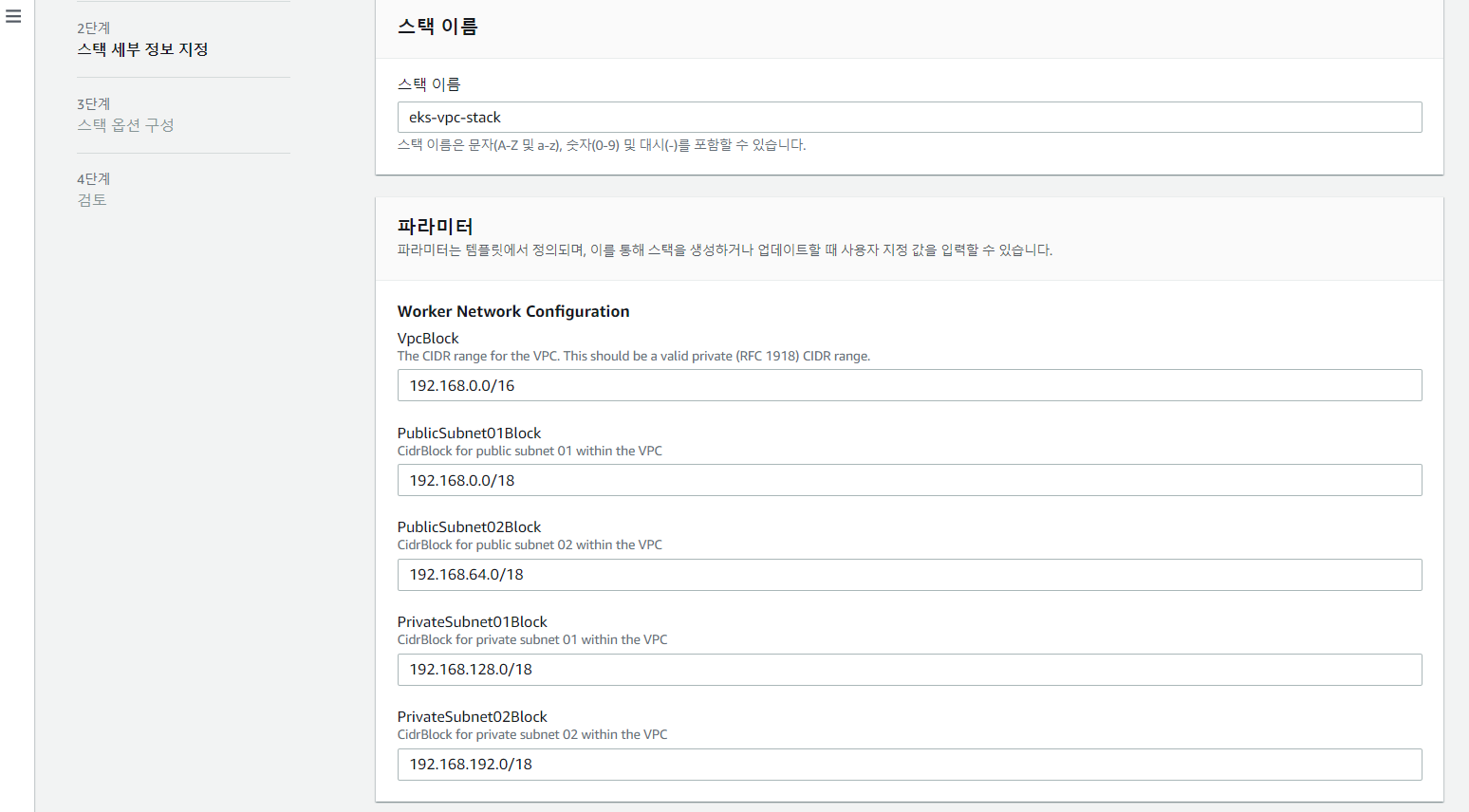 - 스택이름 : eks-vpc-stack
