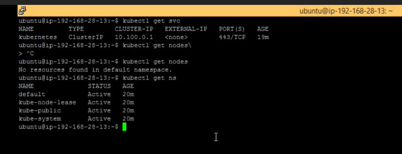 - kubectl get ns
