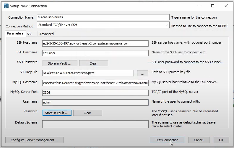 - Workbench 터널링 설정 (Aurora 서버리스 접속)