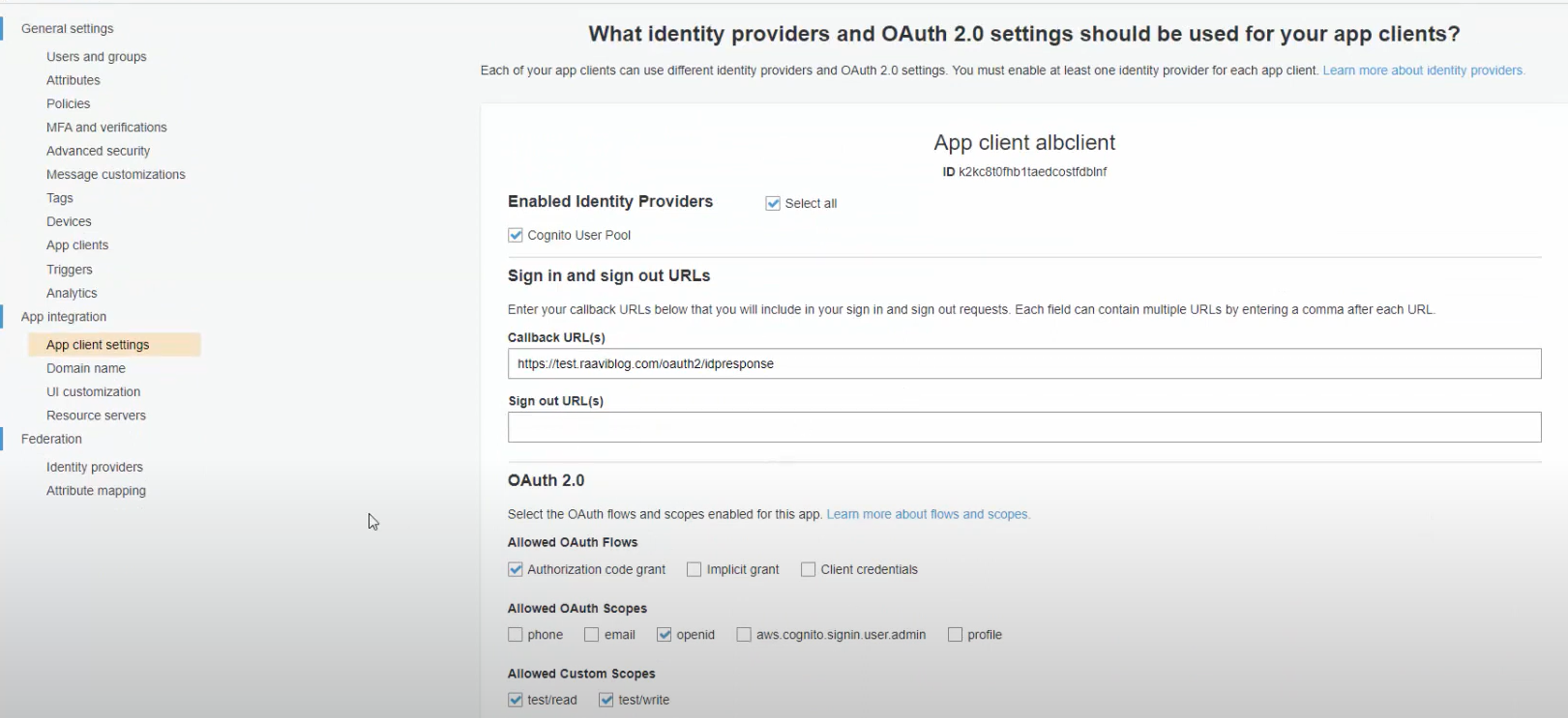 - App client secret 확인