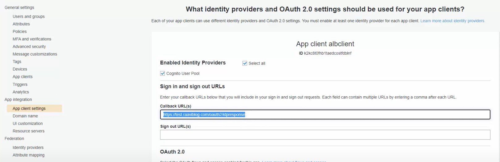 - Cognito 는 HTTPS 를 사용하지만, 아직 미생성으로 현재는 HTTP로 설정