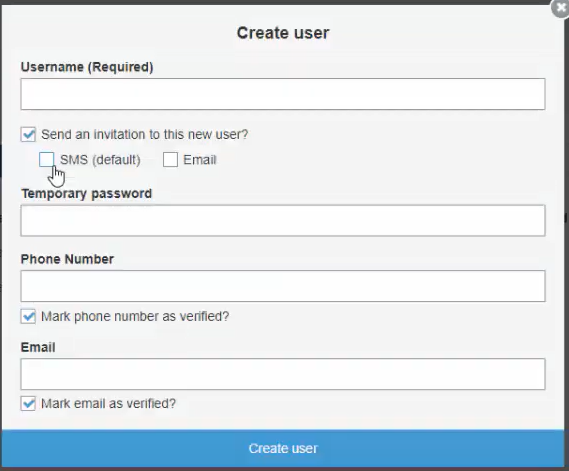 페이지에 처음 액세스하는 것이므로 새 사용자로 등록합니다. Amazon Cognito는 이 정보를 사용자 풀에 저장합니다. 나중에 Amazon Cognito 사용자 풀 콘솔로 이동하면 이 새 사용자가 표시됩니다.