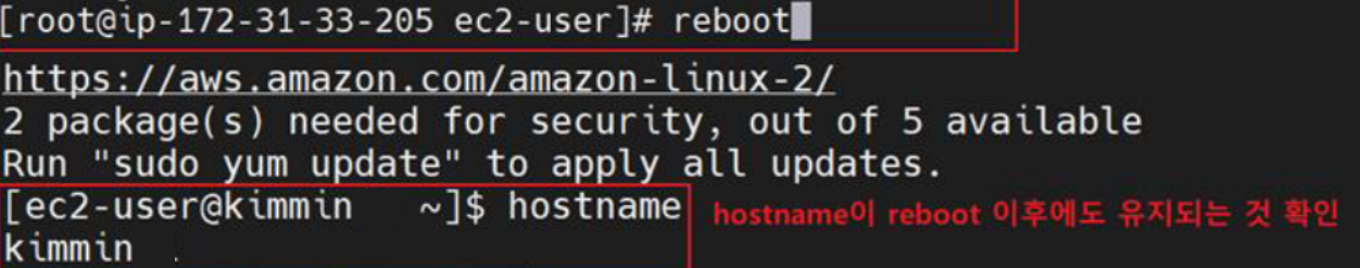 또한, /etc/hostname 파일 안의 내용도 변경되었기 때문에, reboot를 해도 호스트명이 유지됩니다.