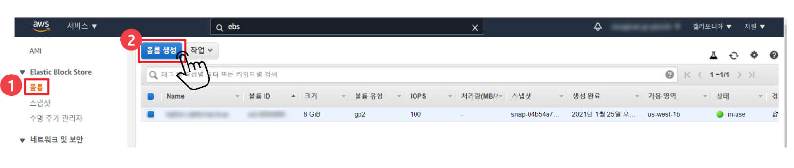 EBS 볼륨 - 생성