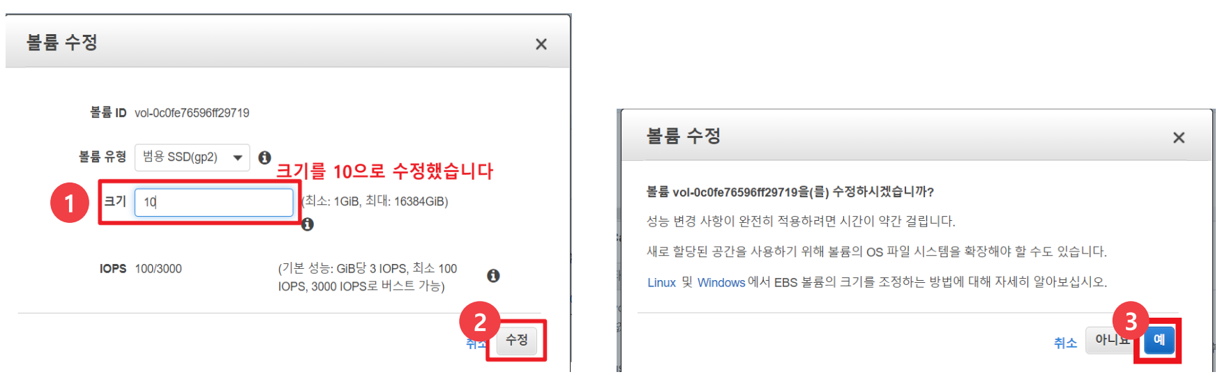 확장하고 싶은 크기를 입력해준 뒤에, 수정 버튼을 누르고 예를 클릭해주세요.