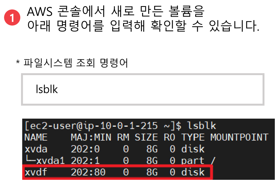 그렇기 때문에, lsblk 명령어를 통해 새로만든 EBS 볼륨이 잘 연결이 됬는지 확인할 수 있습니다.