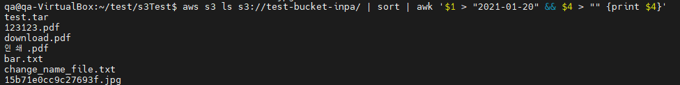 aws s3 cp s3://bucat-name/"$f" ./ # 그리고 그 파일명으로 현재 디렉토리에 다운