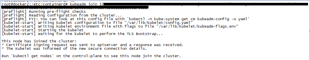 마스터 노드 설정을 끝낸 뒤 워커노드에는 마스터 노드에서 실행 시 나왔던 토큰 값을 입력 해 준다.