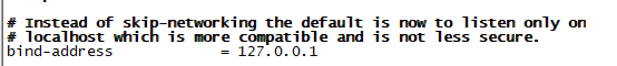 편집기를 확인해 보면 bind-address가 127.0.0.1로 되어 있다. 127.0.0.1은 로컬이다.