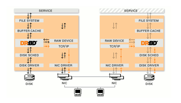 DRBD는 네트워크를 통해 미러링 하게 된다. DRBD는 네트워크를 통해 미러링만 하므로 다른 유틸을 함께 사용하는 것이 좋다.