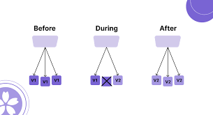 위 사진에서 보듯이 3개의 서버가 있다면 한대를 라우팅에서 제외한 후 업데이트를 진행하고 업데이트가 완료되면 다시 라우팅을 진행한다. 그 후 한대씩 점진적으로 변경할 수 있다.