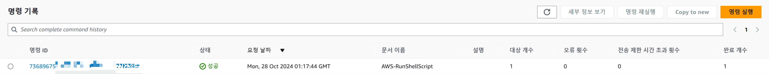 AWS Systems Manager -> 명령 실행 클릭