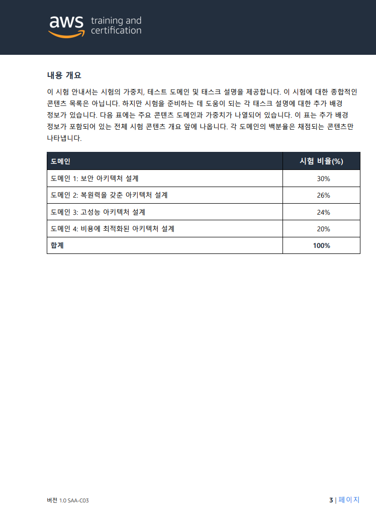 AWS 관련 자격증 SAA Solutions Architect Associate가 8월에 C03으로 변경 되었다.