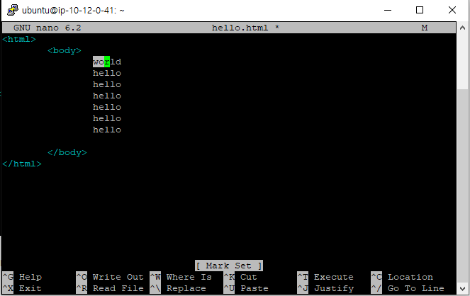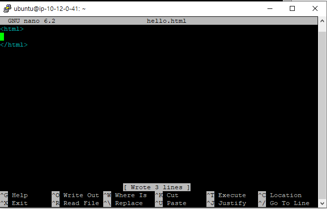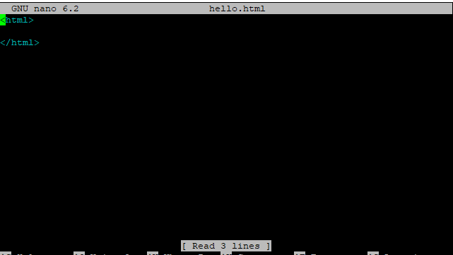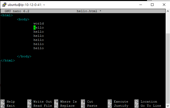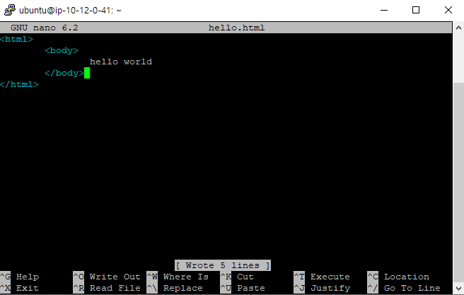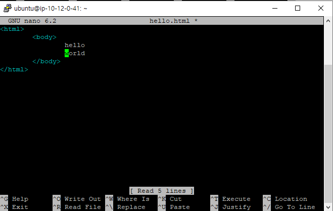 nano hello.html을 작성하면 그대로 수정할 수 있다.