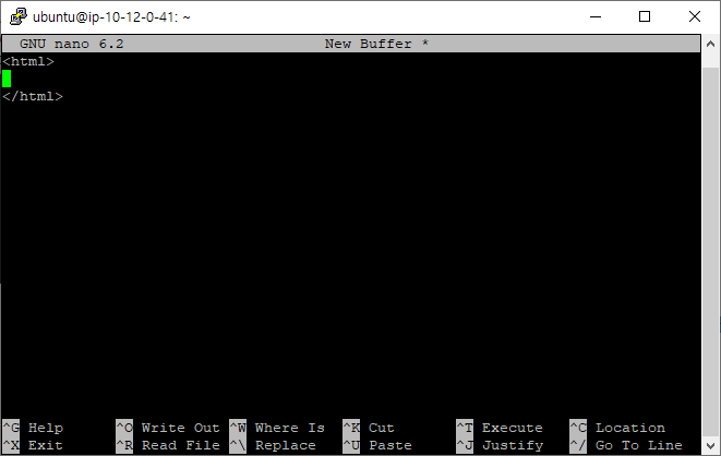 nano 편집기에서 가장 기본적인 html의 골격을 만들었다. 만약 이 파일을 저장하고 싶으면 어떻게 해야할까?