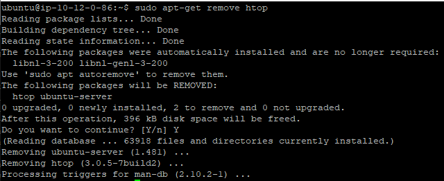 마지막으로 삭제를 위해서는 remove 명령어를 사용하면 된다. 정말 삭제할 지 한번 더 묻게되고 Y를 누르면 삭제하게 된다.