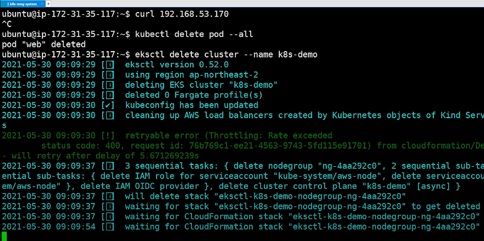 ## EKS 는 프라이빗 쿠버네티스와 다르게, 관리시스템에서 curl 테스트 불가 (IP 대역 다름)